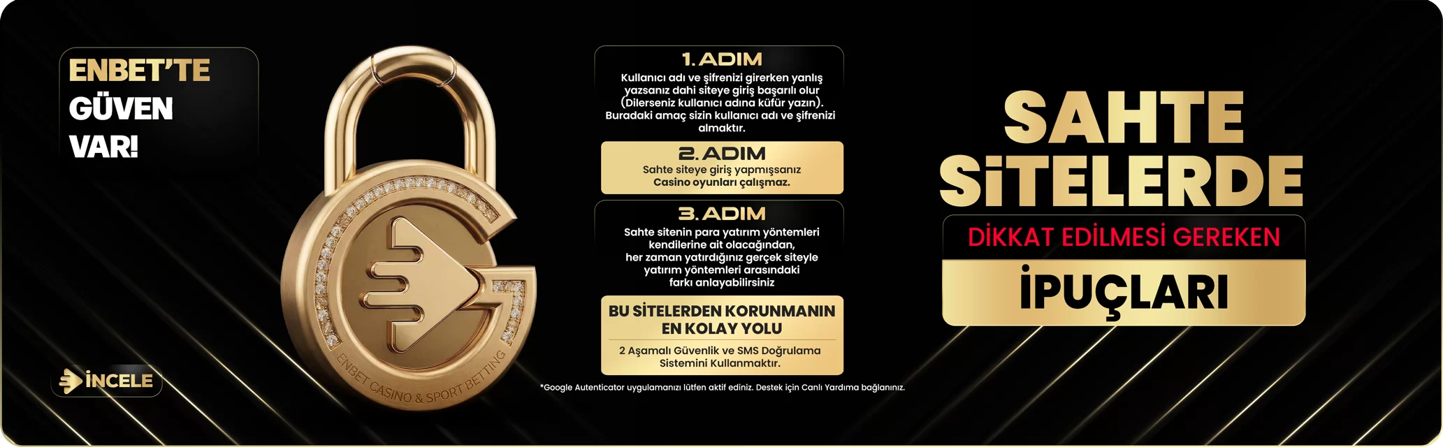 Siteye bağlanırken çok dikkatli olmanız gereken en önemli kural: Yanıltıcı linklere veya arama motorlarındaki sponsorlu fake reklamlara tıklamamaktır. Güvenliğinizi sağlamak için hesaplarınıza mutlaka Enbet resmi giriş panelleri üzerinden erişim sağlayın. Sizi bilmediğiniz tasarımlarda form doldurmaya yönelten sitelerden kaçının. Orjinal tasarımda iki aşamalı giriş güvenliği, re-captcha ve lisans doğrulama linki yer alır.